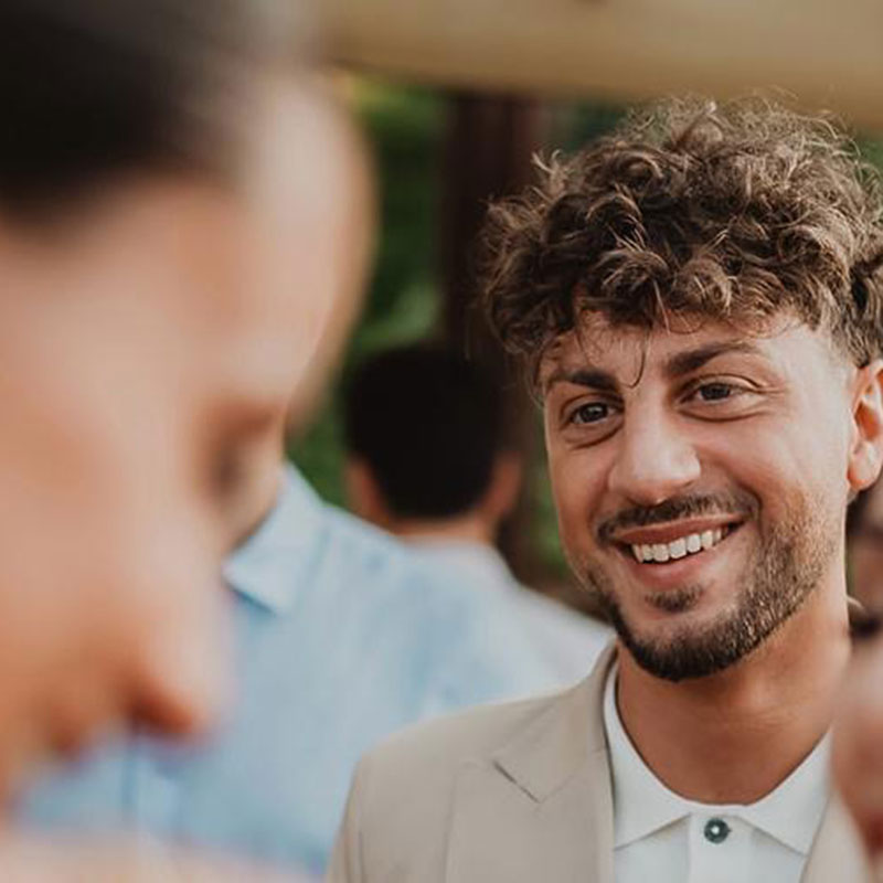 La cerimonia si terrà a Casale Baldetti, all'aperto, alle ore 17:00. Un momento intimo, immerso nella luce del pomeriggio, che non vediamo l'ora di condividere con voi. In questo luogo speciale, sospeso tra natura e storia, ci scambieremo le nostre promesse, circondati dalla bellezza del paesaggio e dall'affetto di chi ci accompagnerà in questo giorno speciale. Vi aspettiamo per vivere insieme l'inizio della nostra storia.
